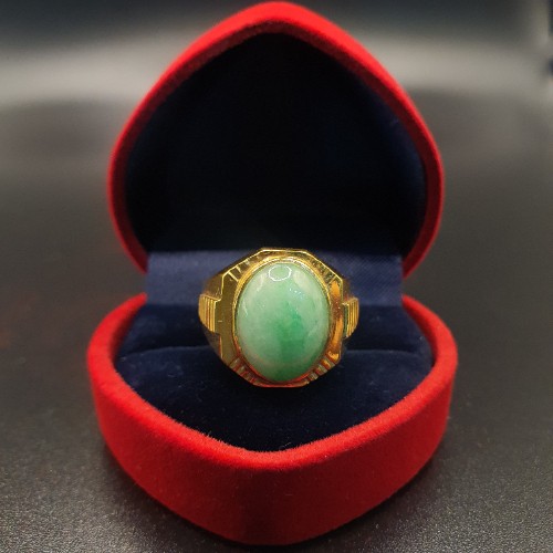 TURBO [A玉] 八角面蛋玉黄金戒指 916 Octagonal face egg jade Gold Ring 4