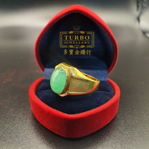 TURBO [A玉] 八角面蛋玉黄金戒指 916 Octagonal face egg jade Gold Ring 6