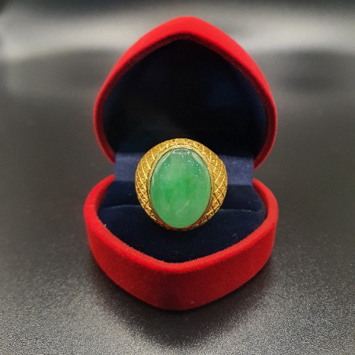 TURBO [A玉] 包边黄梨花蛋玉黄金戒指 916 Pineapple Flower Egg Jade Gold Ring
