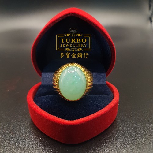 TURBO [A玉] 包边蛋玉黄金戒指 916 Round Egg Jade Gold Ring
