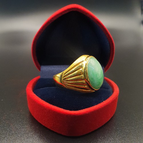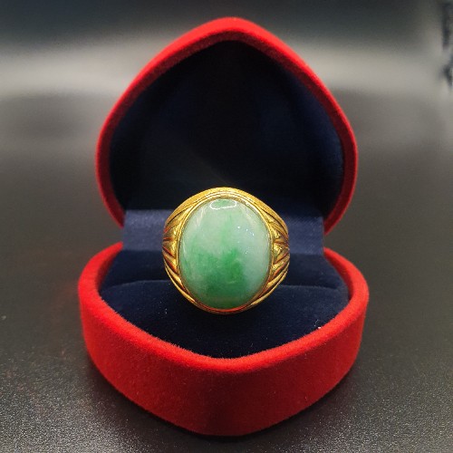TURBO [A玉] 包边蛋玉黄金戒指 916 Round Egg Jade Gold Ring 4