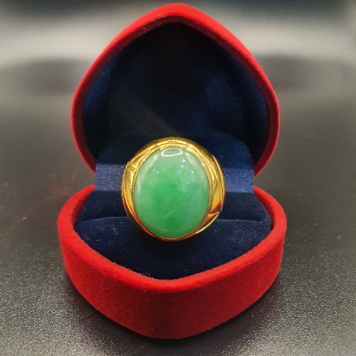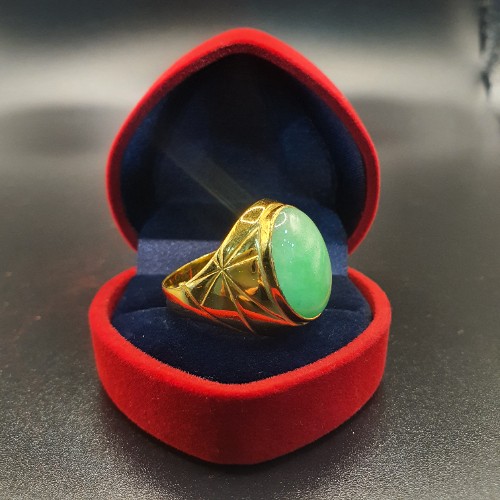 TURBO [A玉] 包边蛋玉黄金戒指 916 Round Egg Jade Gold Ring 7
