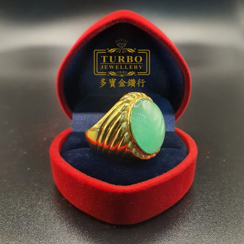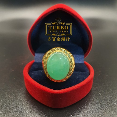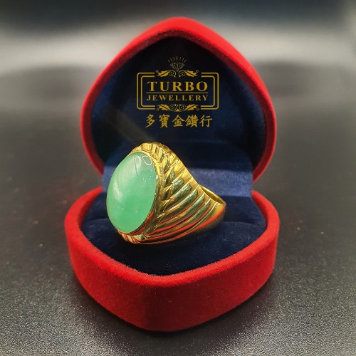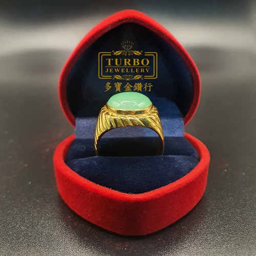 TURBO [A玉] 包边蛋玉黄金戒指 916 Round Egg Jade Gold Ring 9