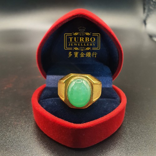 TURBO [A玉] 八角面蛋玉黄金戒指 916 Octagonal face egg jade Gold Ring 6